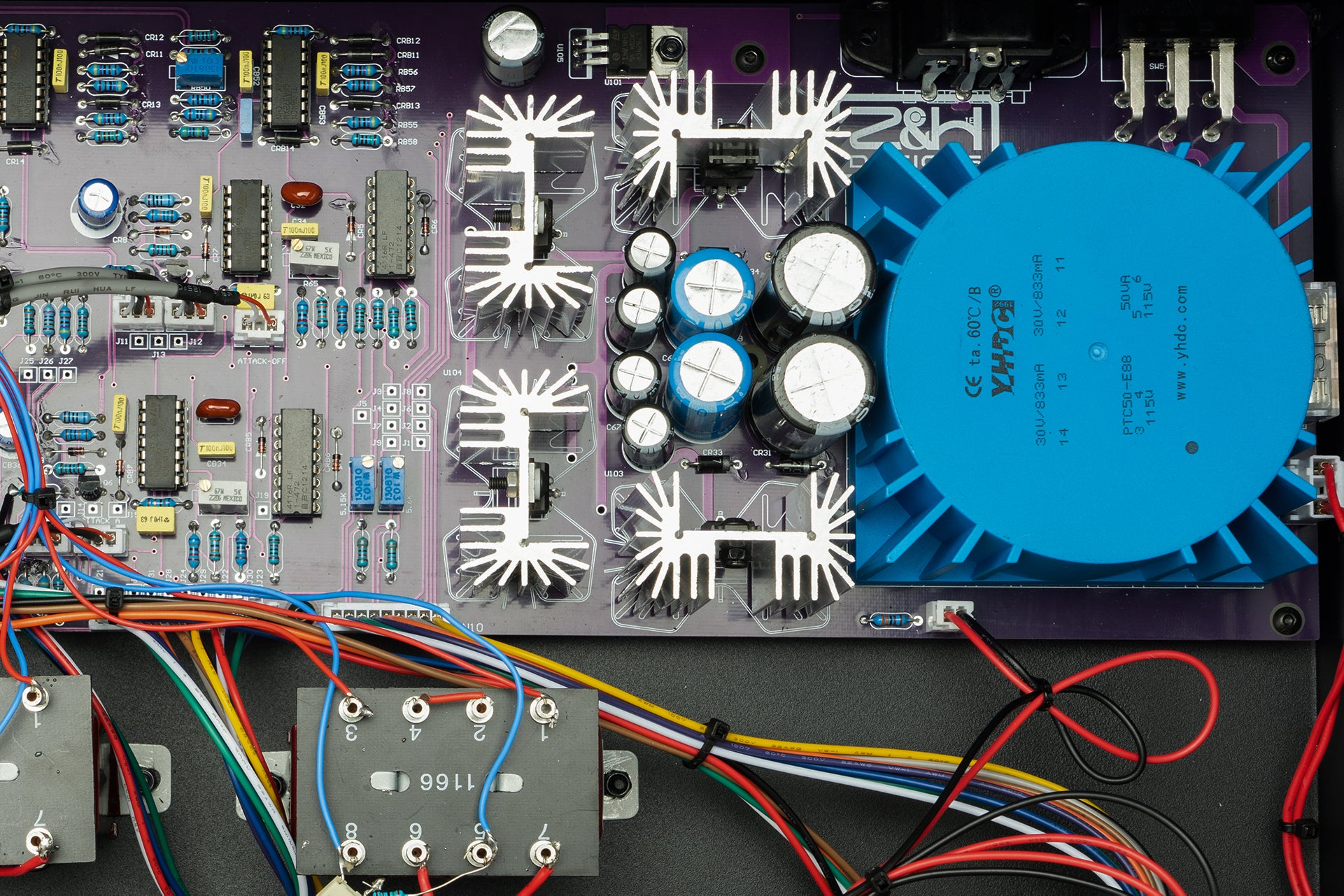 We tested almost all classic output transformers, and the 1166 with Neve's style outperformed every opponent. This is the most heavy-duty and expensive choice, for which we replicated the mold and hand-built our 1166 with 100% accuracy. It nourishes the sound, evens the dynamics, and enhances the mix.